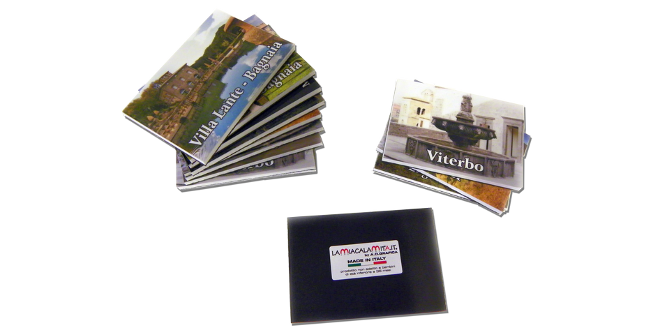 Produzione e vendita di calamite personalizzate o magneti decorativi di altissima qualità, spillette, gadgets, souvenir e di adesivi normali e magnetici per autoveicoli.